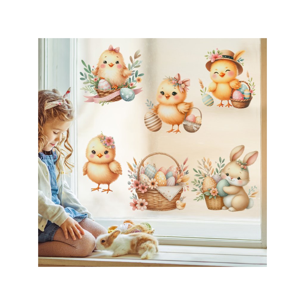 Sada jarních samolepek s kuřátky potěší především děti. Rozveselte dětský pokojíček a jednoduše ozdobte okna touto veselou dekorací na sklo.