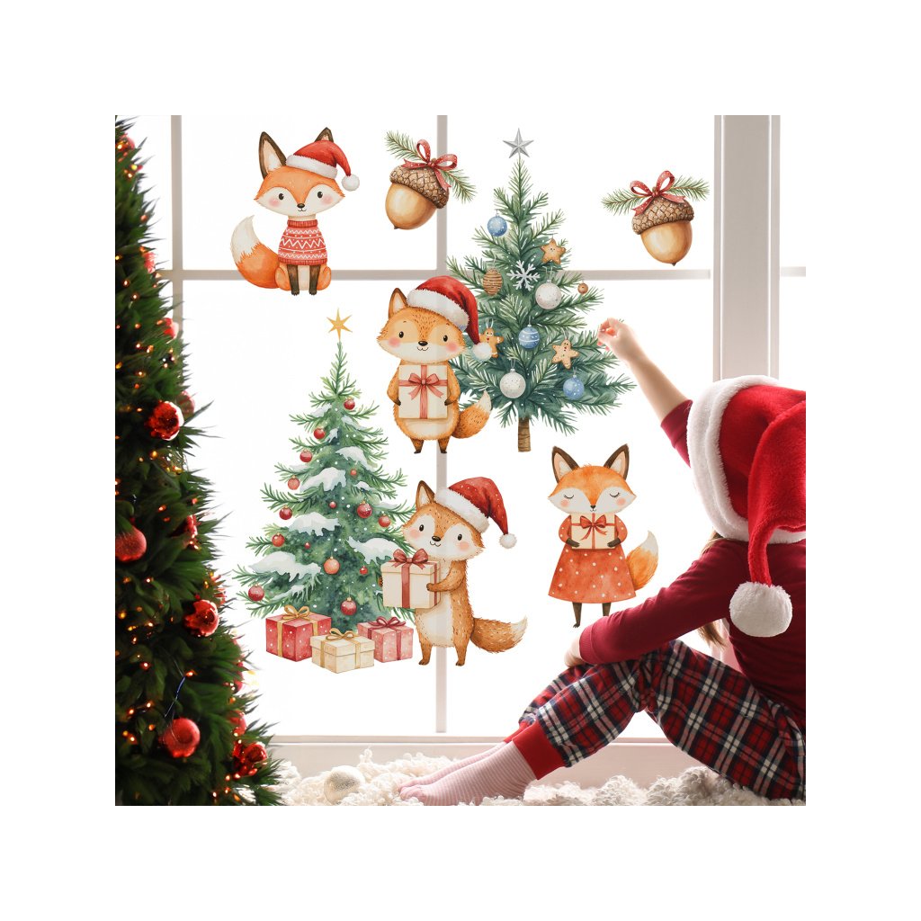 Chcete svá okna efektivně vyzdobit o vánočních svátcích nebo během zimy? Udělejte radost dětem a ozdobte okna těmito krásnými samolepkami s motivem vánočních lišek, které vykouzlí hřejivou zimní atmosféru.