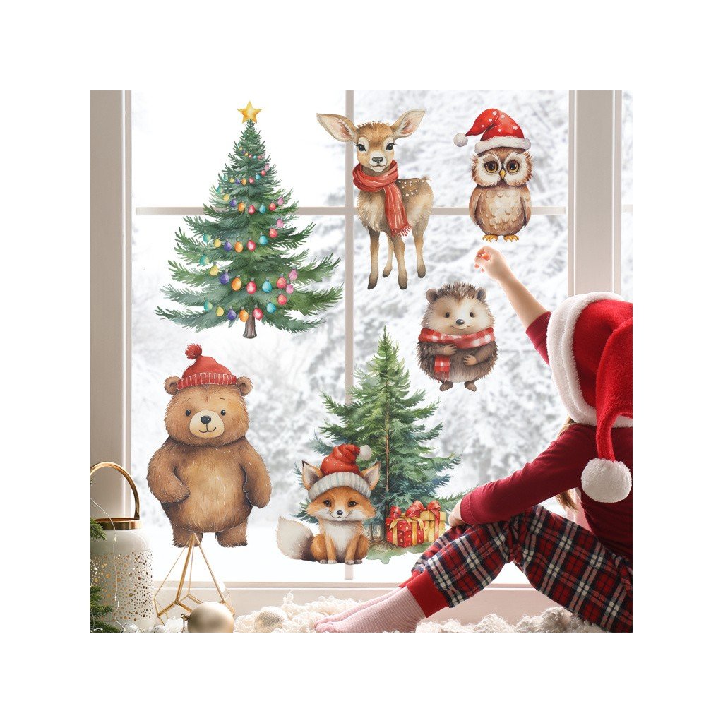 Chcete svá okna efektně vyzdobit o vánočních svátcích nebo během zimy? Udělejte radost dětem a ozdobte je vánoční samolepkou se zvířátky.